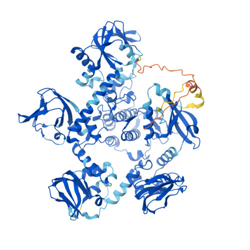 Computed Structure Models provide per-residue confidence score (pLDDT) between 0 and 100. Some regions below 50 pLDDT may be unstructured in isolation.