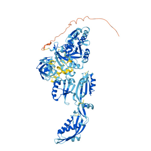 Computed Structure Models provide per-residue confidence score (pLDDT) between 0 and 100. Some regions below 50 pLDDT may be unstructured in isolation.