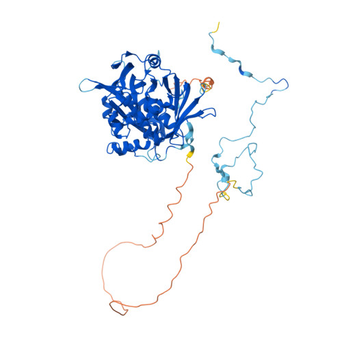 Computed Structure Models provide per-residue confidence score (pLDDT) between 0 and 100. Some regions below 50 pLDDT may be unstructured in isolation.