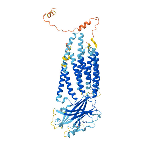 Computed Structure Models provide per-residue confidence score (pLDDT) between 0 and 100. Some regions below 50 pLDDT may be unstructured in isolation.