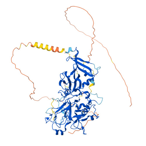 Computed Structure Models provide per-residue confidence score (pLDDT) between 0 and 100. Some regions below 50 pLDDT may be unstructured in isolation.