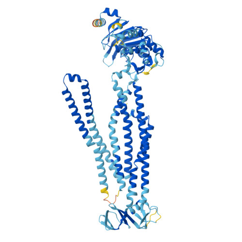 | Probable multidrug resistance ABC transporter ATP-binding/permease protein YheH | 673 | Bacillus subtilis subsp. subtilis str. 168 | Mutation(s): 0  Gene Names: yheH EC: 7.6.2 | ![]() | |