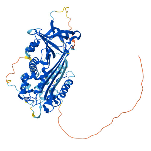 Computed Structure Models provide per-residue confidence score (pLDDT) between 0 and 100. Some regions below 50 pLDDT may be unstructured in isolation.