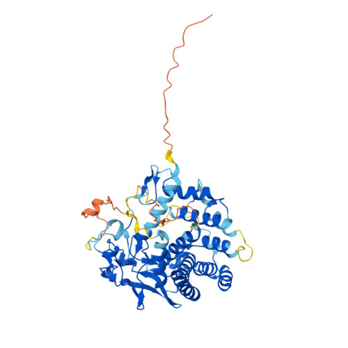Computed Structure Models provide per-residue confidence score (pLDDT) between 0 and 100. Some regions below 50 pLDDT may be unstructured in isolation.