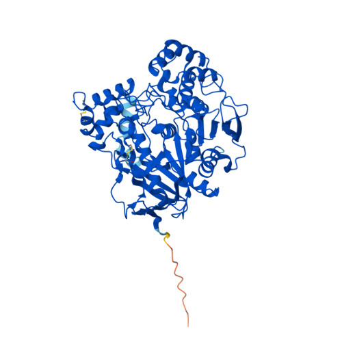 Computed Structure Models provide per-residue confidence score (pLDDT) between 0 and 100. Some regions below 50 pLDDT may be unstructured in isolation.