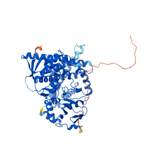 Computed Structure Models provide per-residue confidence score (pLDDT) between 0 and 100. Some regions below 50 pLDDT may be unstructured in isolation.