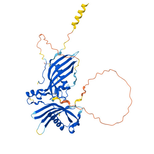 Computed Structure Models provide per-residue confidence score (pLDDT) between 0 and 100. Some regions below 50 pLDDT may be unstructured in isolation.