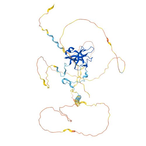 Computed Structure Models provide per-residue confidence score (pLDDT) between 0 and 100. Some regions below 50 pLDDT may be unstructured in isolation.