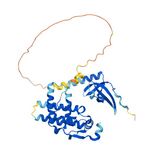 Computed Structure Models provide per-residue confidence score (pLDDT) between 0 and 100. Some regions below 50 pLDDT may be unstructured in isolation.
