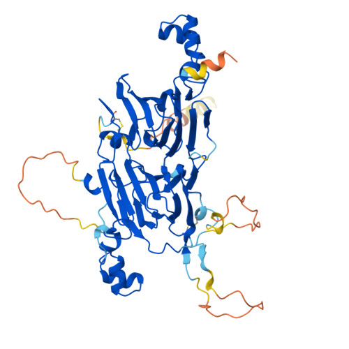 Computed Structure Models provide per-residue confidence score (pLDDT) between 0 and 100. Some regions below 50 pLDDT may be unstructured in isolation.