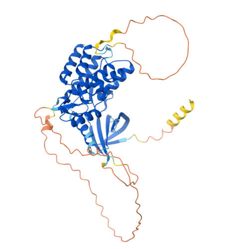 Computed Structure Models provide per-residue confidence score (pLDDT) between 0 and 100. Some regions below 50 pLDDT may be unstructured in isolation.